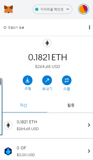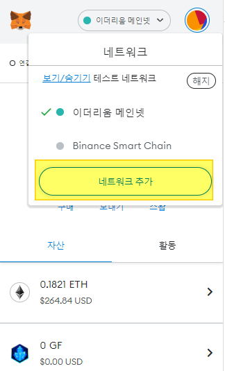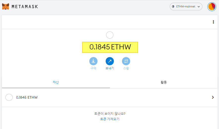 메타마스크에서 추가한 네트워크를 보면 자동으로 ETHW가 에어드랍되어 있는 것을 알 수 있습니다.