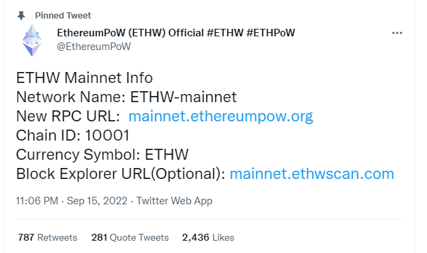 https://twitter.com/EthereumPoW/status/1570413723969552385