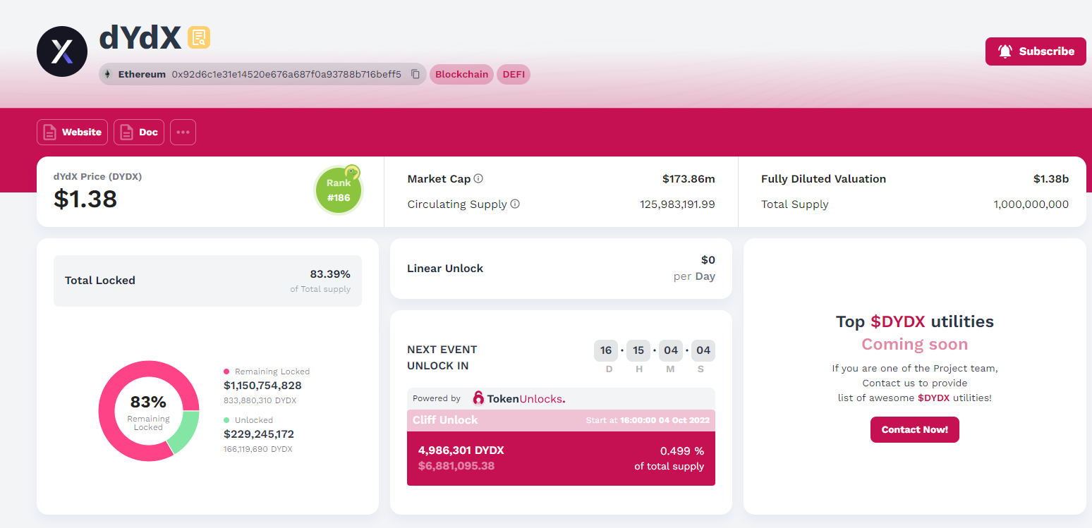 제가 관심있게 보는 dydx는 현재 시장에 풀릴 물량이 83%나 더 남았습니다 ;;;