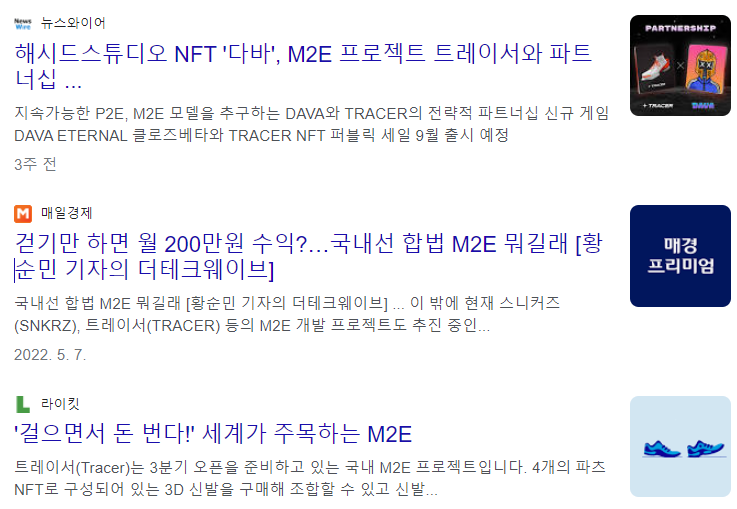 잘 아실만한 M2E는 스테픈, 코인워크, 트레이서, 스니커즈 등이 있습니다.