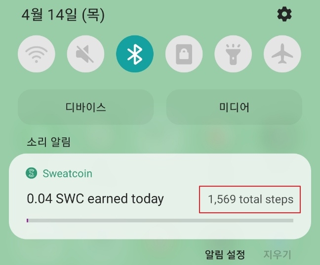 올해 4월부터 했네요 ㅎㅎ 아무튼 걸을 때마다 이렇게 코인을 채굴하게 되고 안드로이드 폰기준으로 notification이 뜹니다.