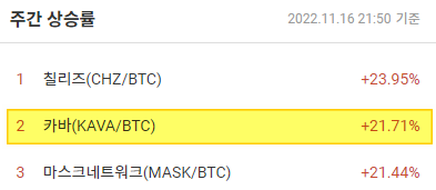 몇일전만 해도 엄청난 상승을 보여준 마스크네트워크보다 주간 상승률이 높은 카바네트워크가 있습니다.