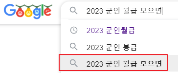 구글 검색창에 "2023 군인 월급"을 검색하면 바로 "모으면" 이라는 말이 붙습니다.