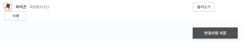 이후 다시 등록하면 다음처럼 파비콘이 등록됩니다. 이후 변경사항 저장까지 꾹 눌러주세요.
