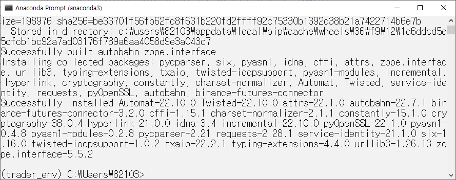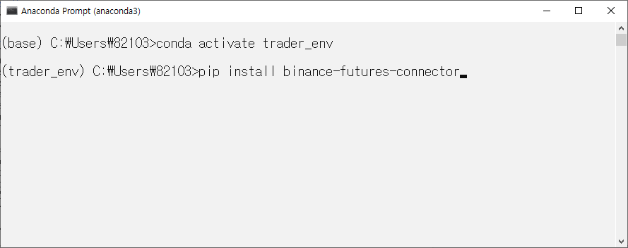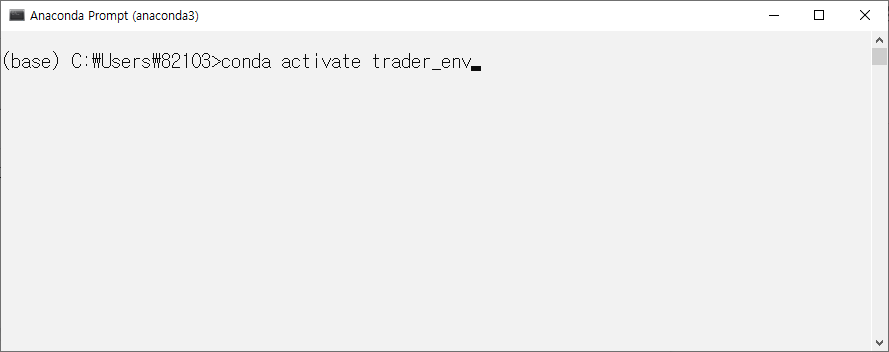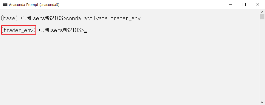 명령어는 다음과 같습니다. (가상환경명은 trader_env입니다.)