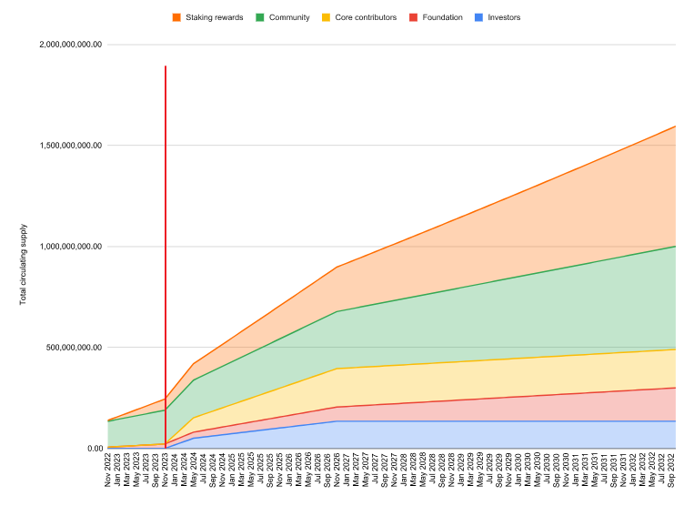 메인넷 오픈 후 12개월 뒤인 2023년 11월을 기점으로 엄청난 양의 앱토스 물량이 락업해제됩니다.