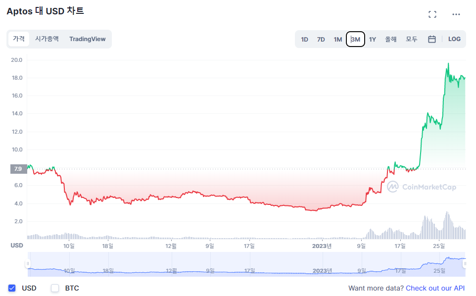 앱토스가 화제가 된 것은 김치코인이 아님에도 업비트에서 많은 거래량을 보여주면서 상승했기 때문인데요.