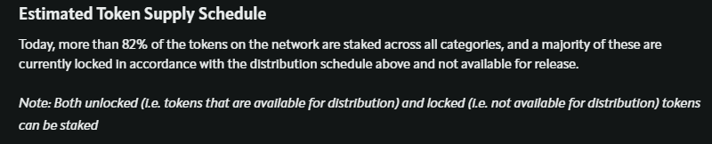 현재 네트워크에 있는 토큰중 82%가 스테이킹 중이지만 시간이 갈수록 시장에 나올 수 있는 앱토스 코인물량이 쏟아집니다.