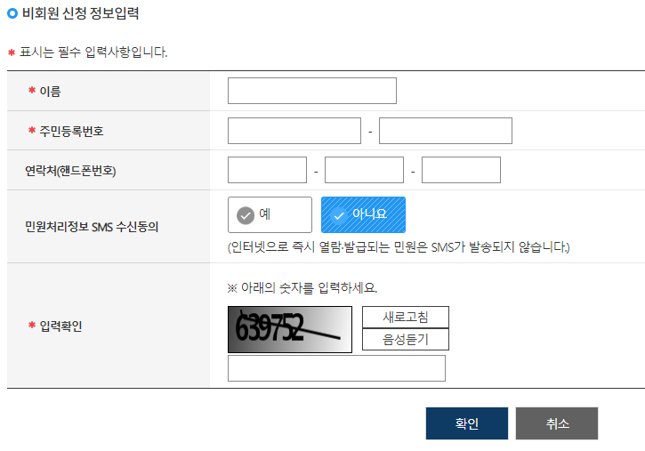 자신의 개인정보를 입력하고 확인을 누릅니다.