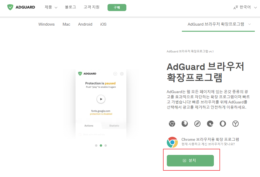 설치가 완료되면 자동으로 광고 차단기능이 활성화 됩니다.