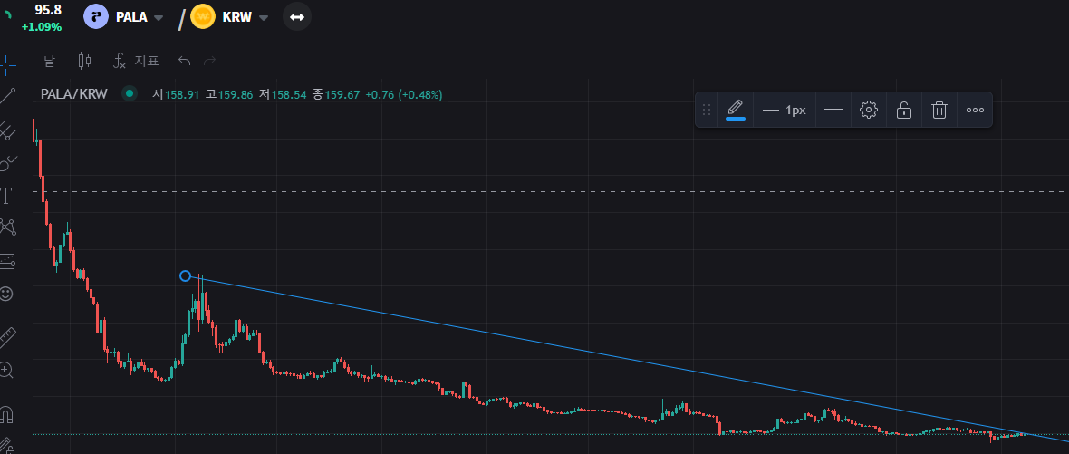 팔라가 한 때는 3,000원도 찍었기 때문에 현재 가격(95원)이 참 우스워보이지만 90원대는 어느정도 지켜주는 모습이 나오고 있습니다. 물론 이러다 50원가도 전혀 이상하지 않습니다.
