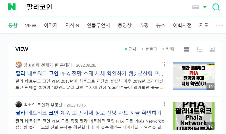 네이버에 팔라코인을 검색해보면 PHA라는 티커로 팔라 네트워크가 있네요