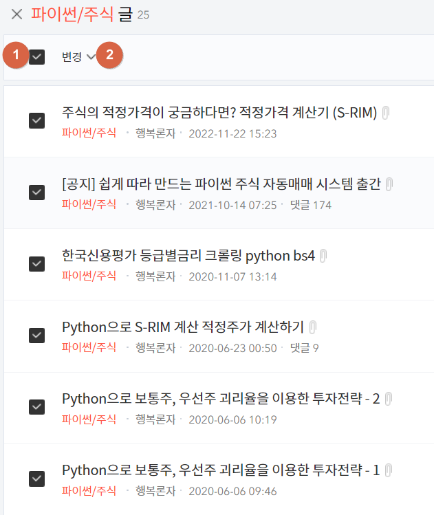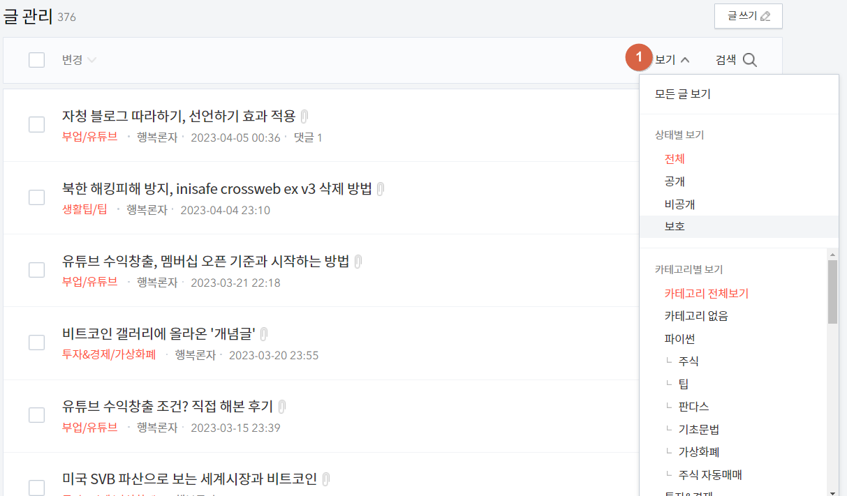 보기 버튼을 눌러 이동을 원하는 카테고리의 글을 클릭합니다.