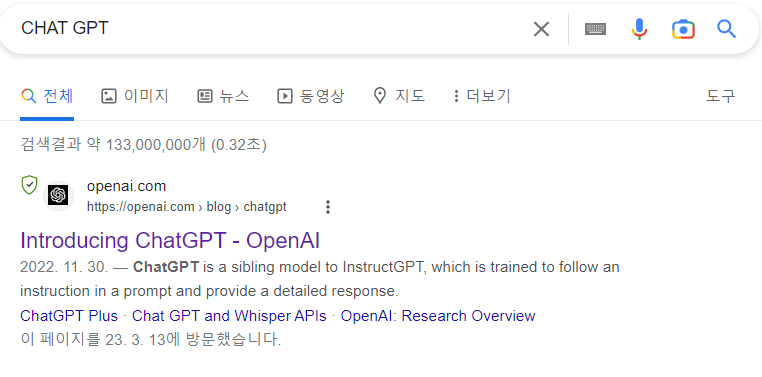 구글에 CHAT GPT를 검색하면 Open API 페이지가 연결됩니다.