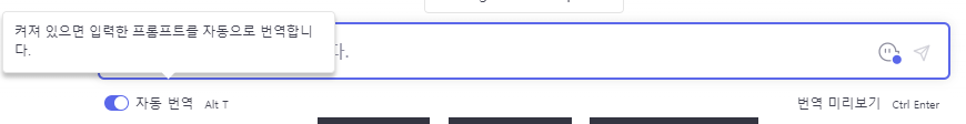 설치를 하면 이렇게 chat gpt 사이트에서 자동으로 자동번역여부가 추가되며 기능을 비활성화하려면 ALT + T를 누르면 됩니다.