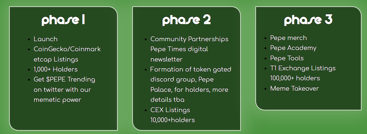 페페코인의 로드맵은 다음과 같은데 사실 아무것도 없다고 봐도 무방합니다.