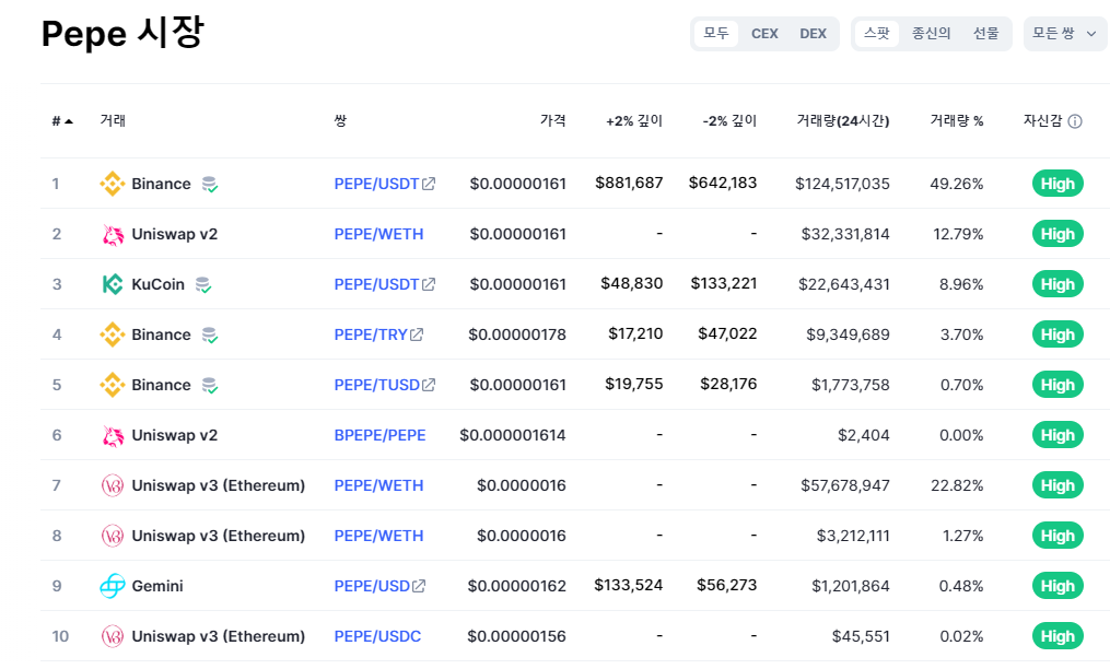 현재 페페코인은 CEX에서는 바이낸스, 쿠코인에서 거래가 가능합니다.