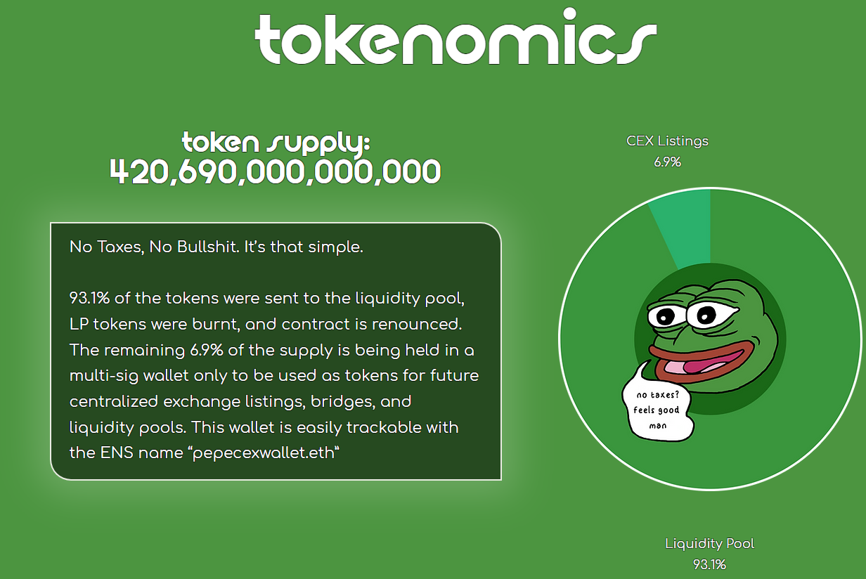 페페코인의 토크노믹스는 다음과 같습니다.
