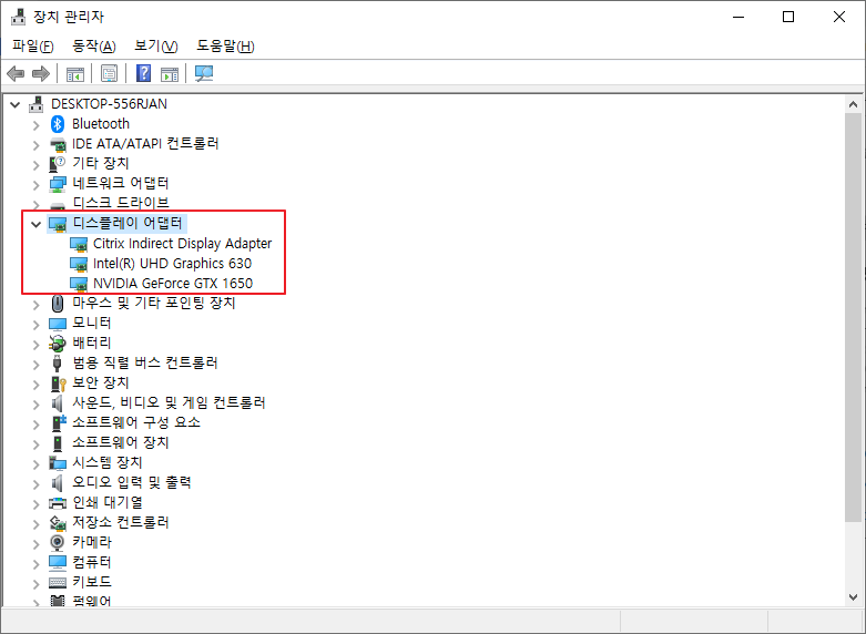 여기서 디스플레이 어댑터 탭을 클릭하면 그래픽카드 버전이 나옵니다.
