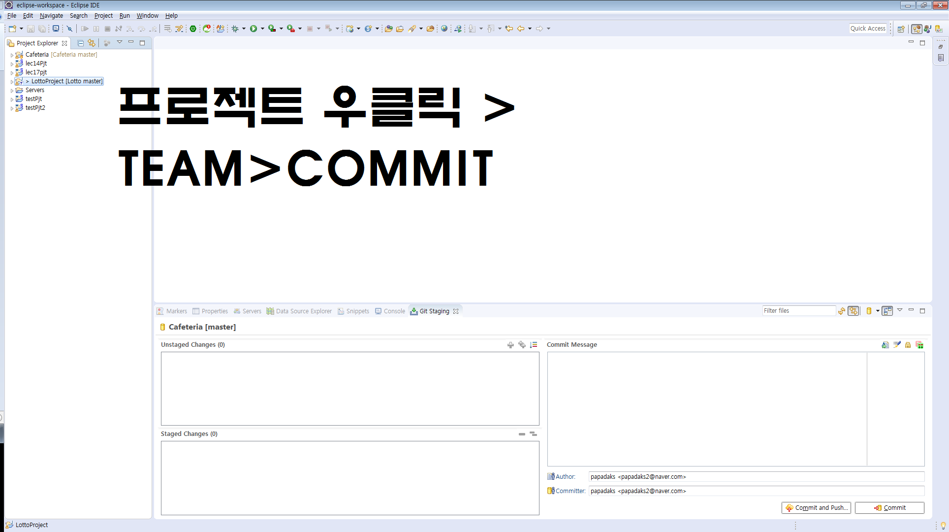 13.첫 commit 말고 계속 수정이 있을 때마다 Eclipse에서 해당 Project 우클릭 후 Team 클릭한 다음 같은 작업을 반복하면 끝