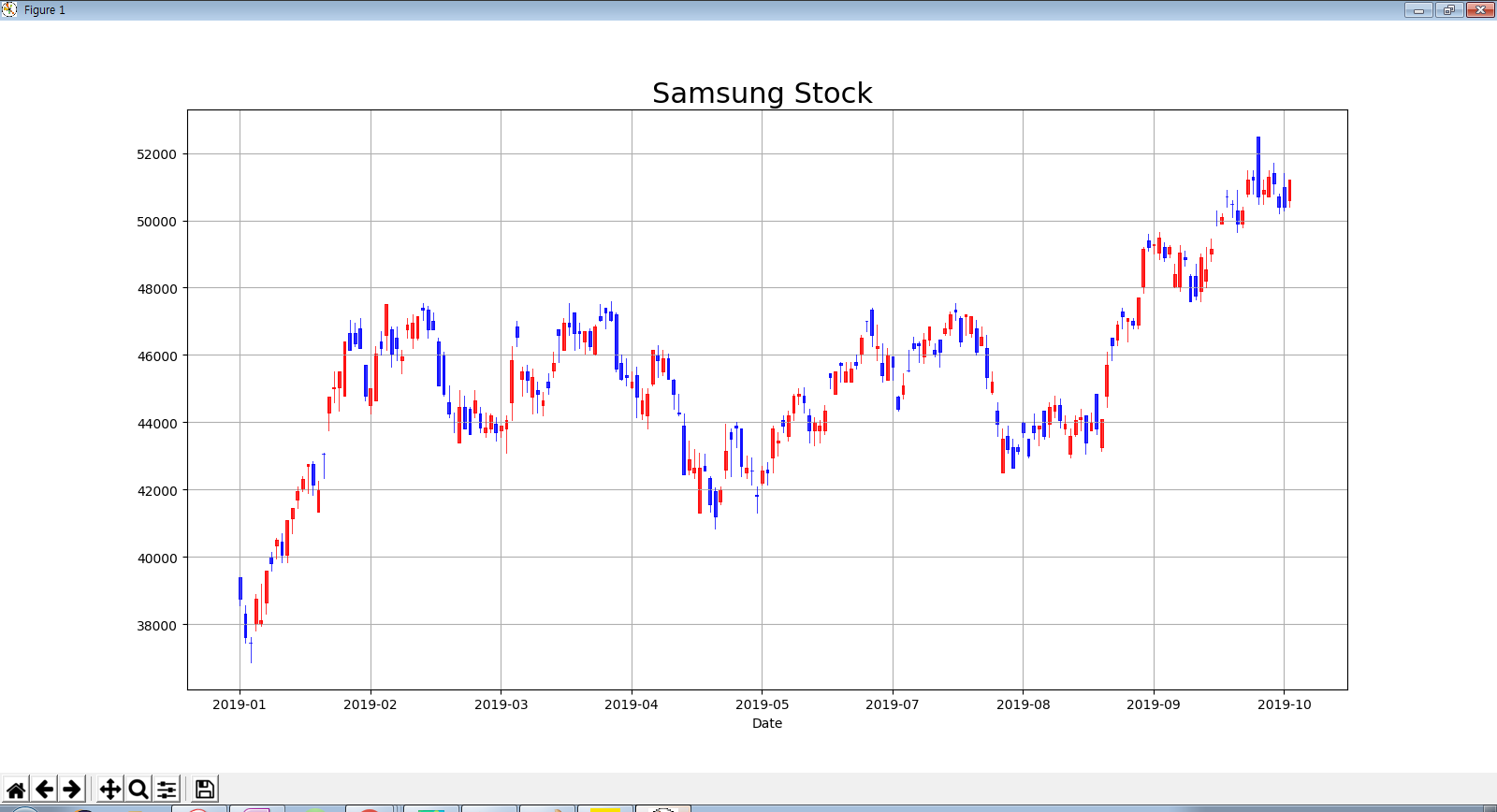 아래는 위 코드의 실행결과입니다. 2019-01부터 2019-10까지의 주가 흐름을 볼 수 있습니다.