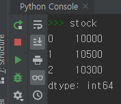 10000, 10500, 10300을 넣은 stock의 모습은 이렇습니다