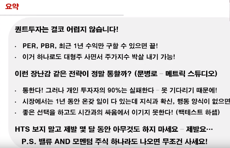 (유튜브는 모멘텀 전략 + 가치평가를 통한 기업 고르기 전략 )